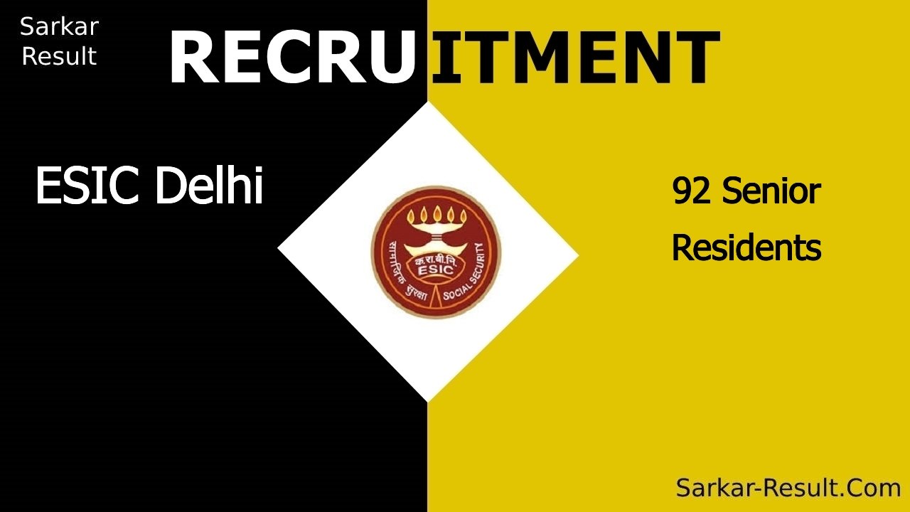 ESIC Delhi Recruitment 2024, Eligibility, Walk-in Interview for 92 Senior Residents, Download Pdf, esic.nic.in